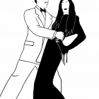 Une illustration au format carte postale qui fait hommage à l’un des couples cultes du 7ème art : Morticia et Gomez Addams.