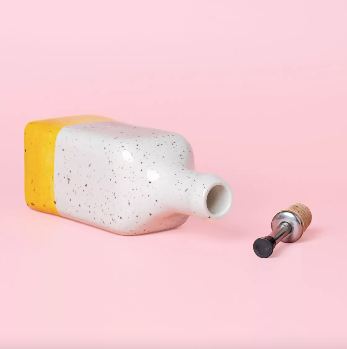 On aime particulièrement le style de ce huilier, avec ses rayures et ses tons doux qui apporteront une touche d’originalité à votre cuisine. En enlevant le bouchon, il pourra même servir de petit vase ou encore de bougeoir !