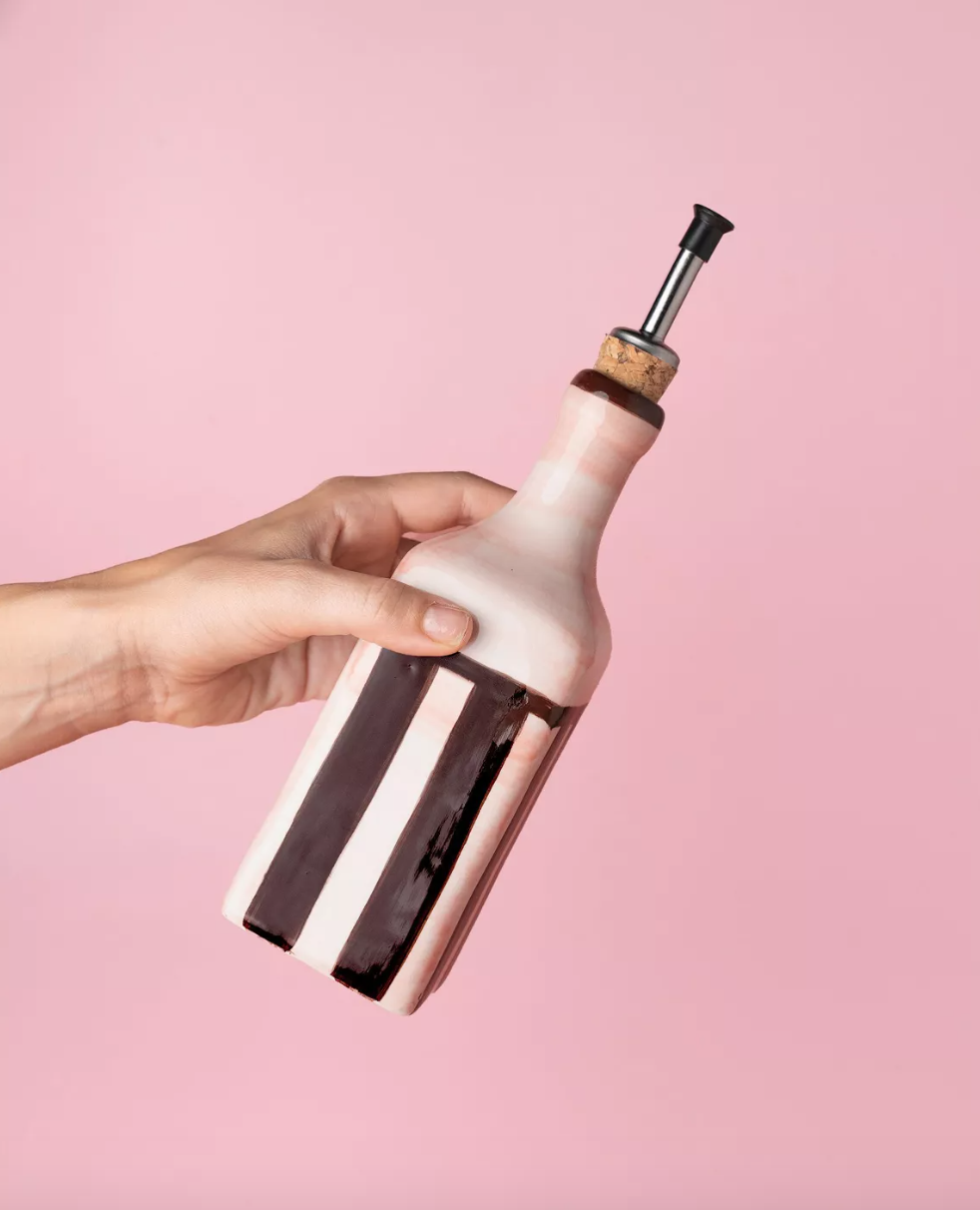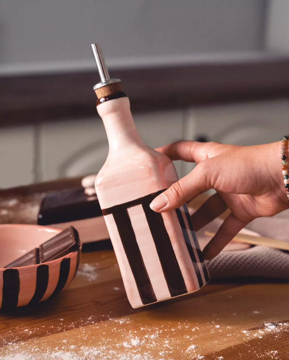 On aime particulièrement le style de ce huilier, avec ses rayures et ses tons doux qui apporteront une touche d’originalité à votre cuisine. En enlevant le bouchon, il pourra même servir de petit vase ou encore de bougeoir !