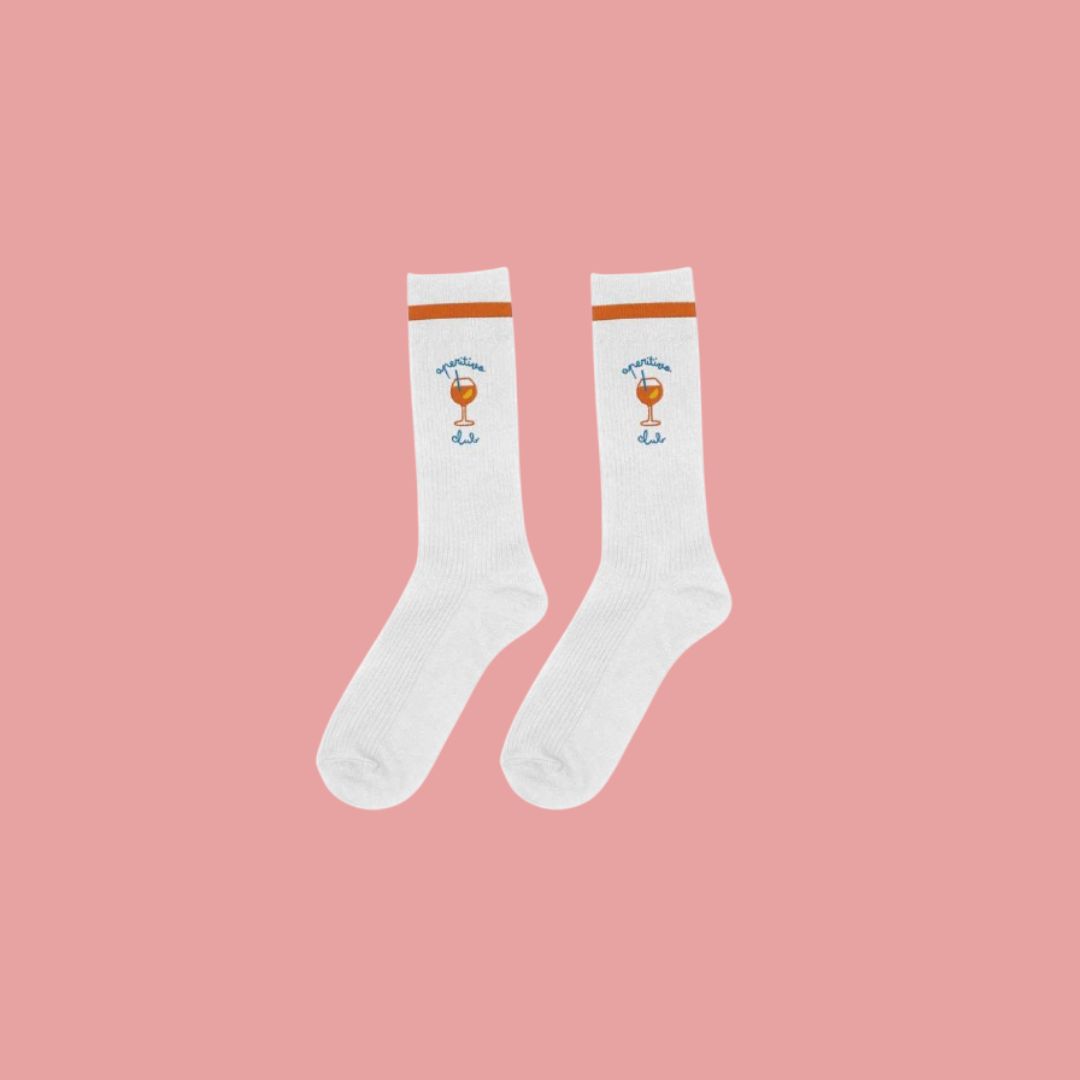 Craquez pour ces chaussettes brodées ornées de cocktails et d’une inscription « Aperitivo Club » qui égayeront chacun de vos pas.