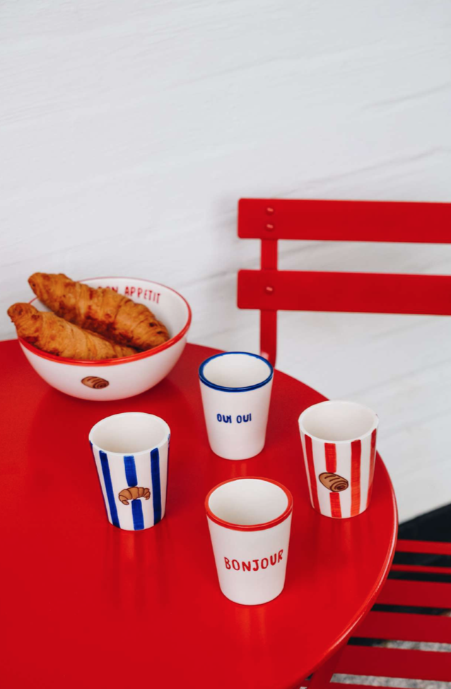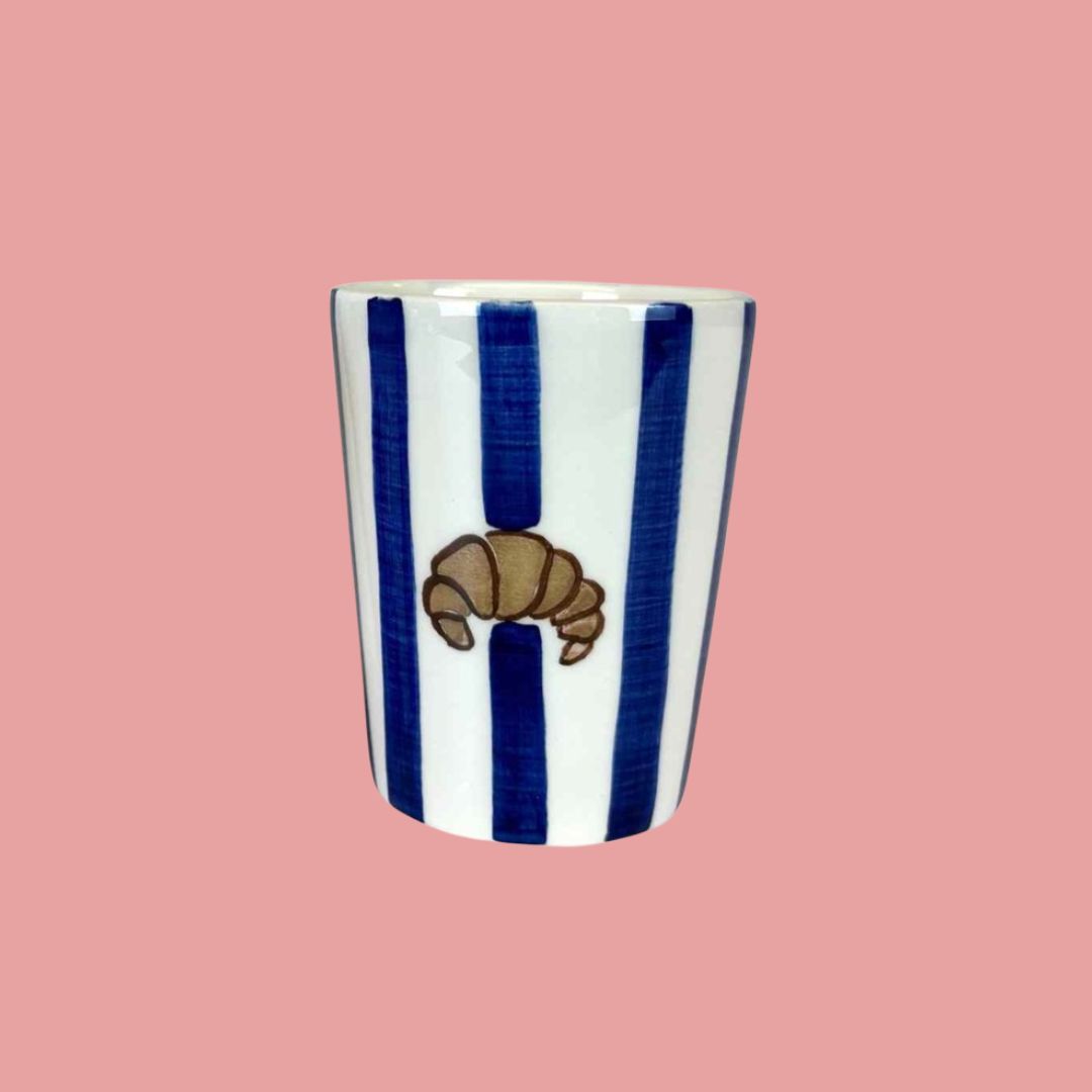 Cette tasse à expresso en céramique, avec ses rayures et son croissant gourmand, deviendra la meilleure alliée de vos pauses café !