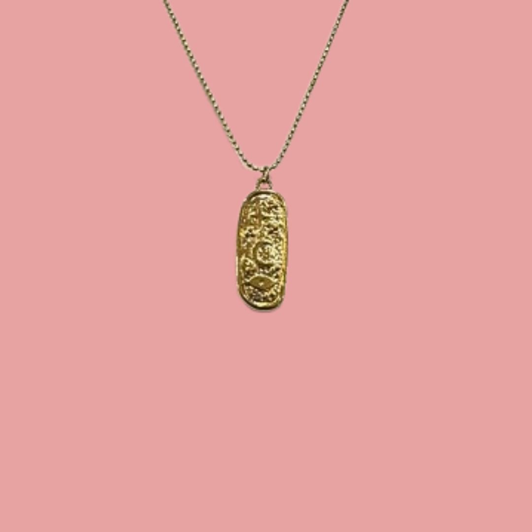 Ajoutez une touche de magie à votre look avec le collier Lucky One et son pendentif orné de motifs porte-bonheur : étoile, lune, oeil…