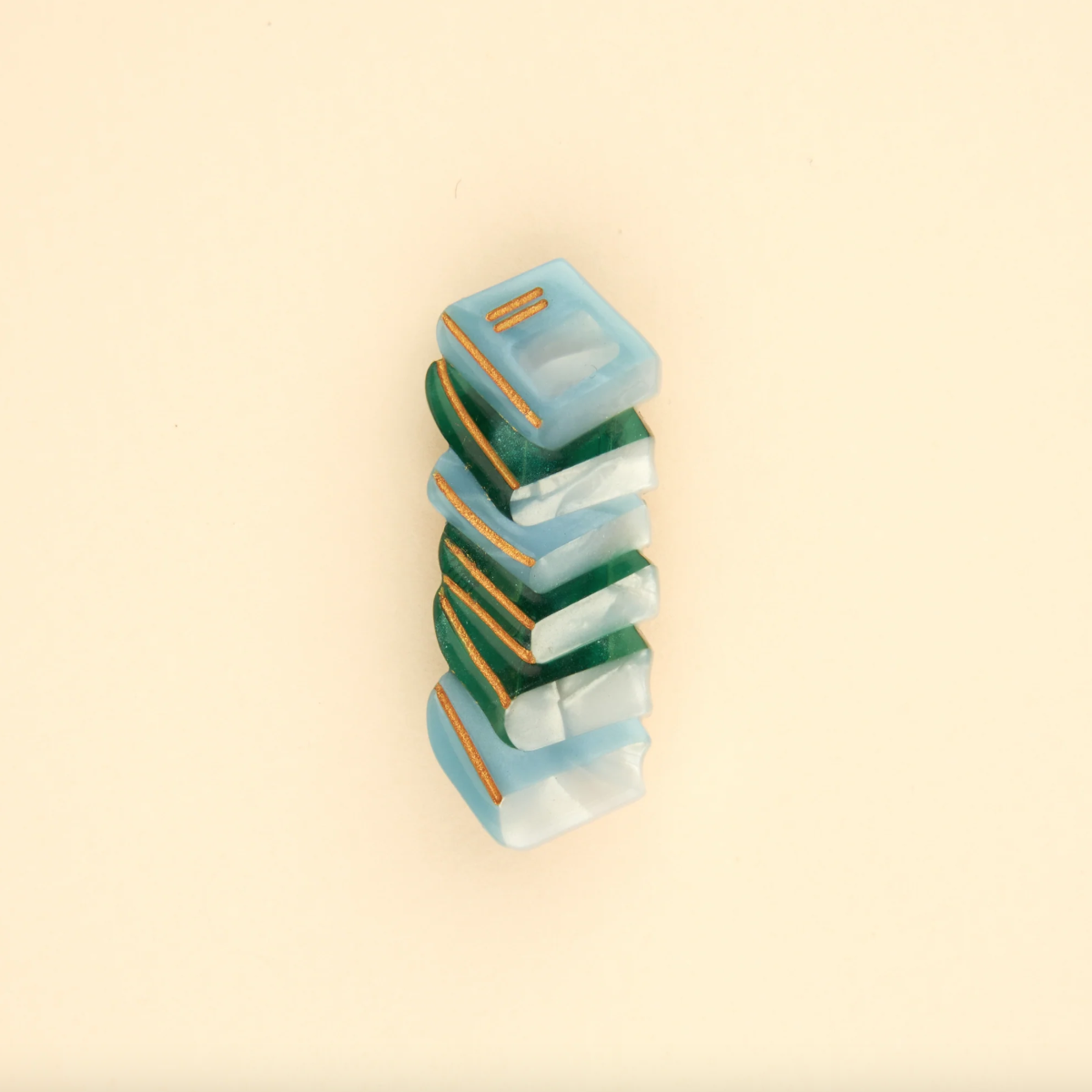 Plonger dans un bon roman avec une tasse de thé à la main, c’est votre truc ? Alors la barrette en forme de pile de livres sera parfaite pour vous !