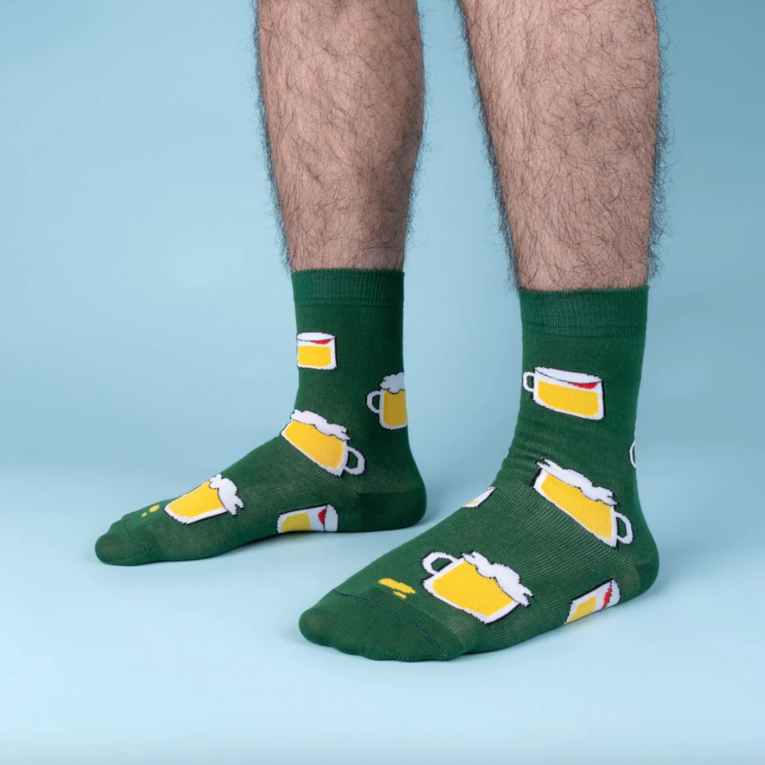 Craquez pour les chaussettes « Bière » de Coucou Suzette, parfaites pour ajouter une touche d’humour à votre tenue.