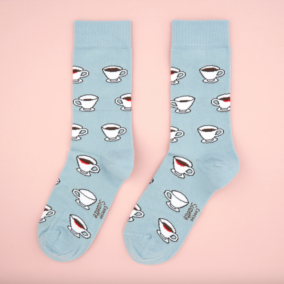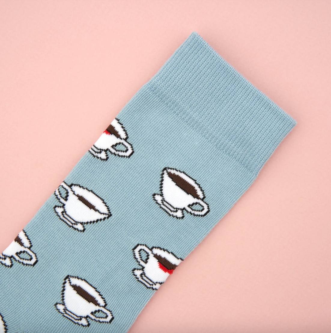 Craquez pour les chaussettes « Café » de Coucou Suzette, parfaites pour ajouter une touche d’humour à votre tenue.