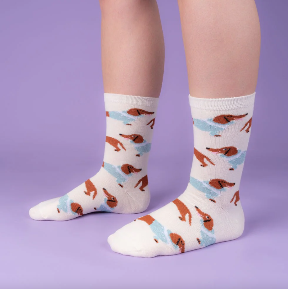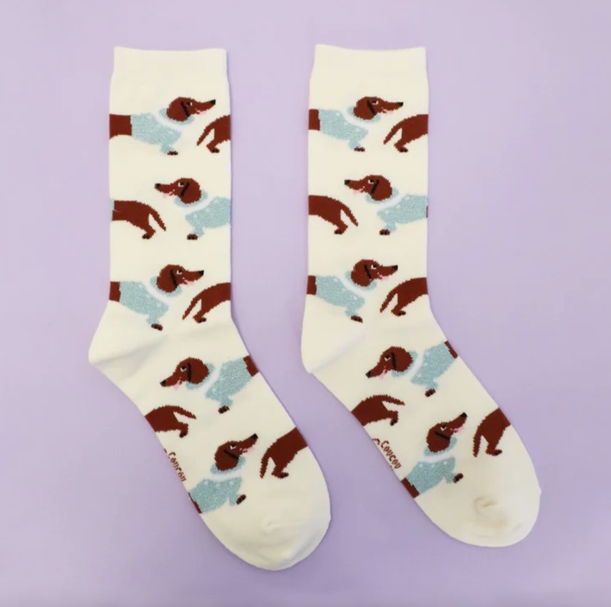 Craquez pour les chaussettes de Noël « Teckel frileux » de Coucou Suzette, parfaites pour rentrer avec douceur dans la saison des fêtes.