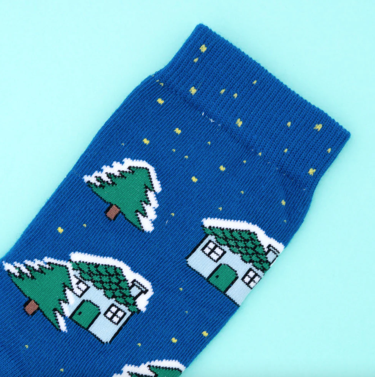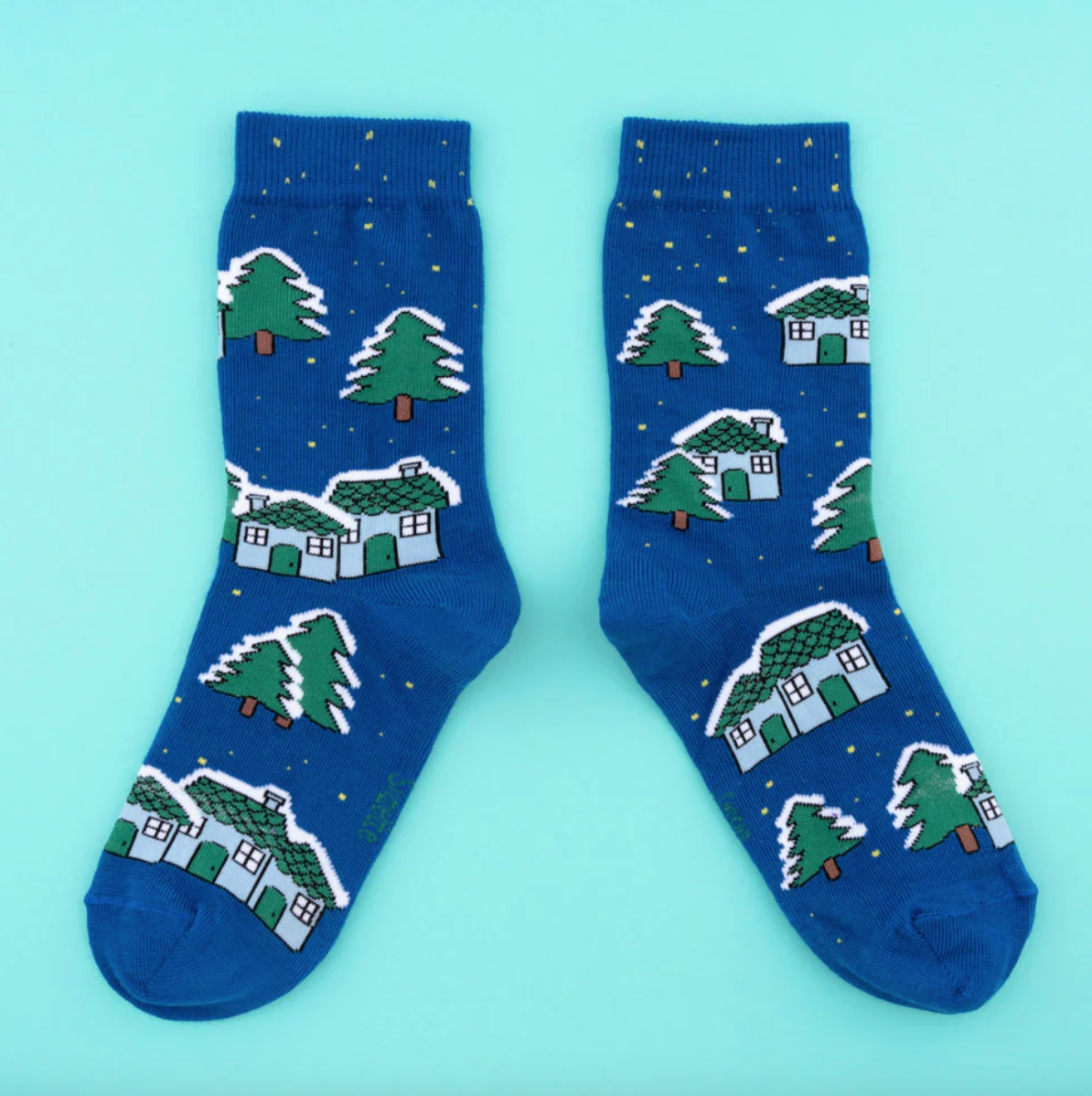 Craquez pour les chaussettes de Noël « Village Enneigé » de Coucou Suzette, parfaites pour rentrer avec douceur dans la saison des fêtes.