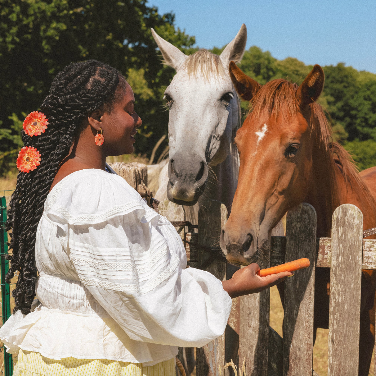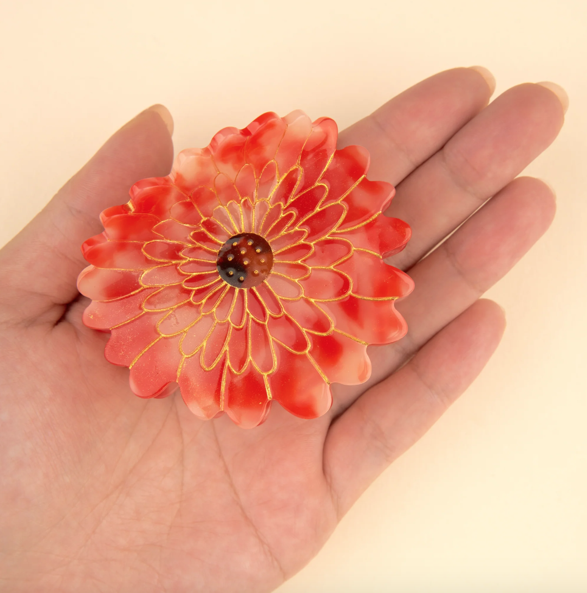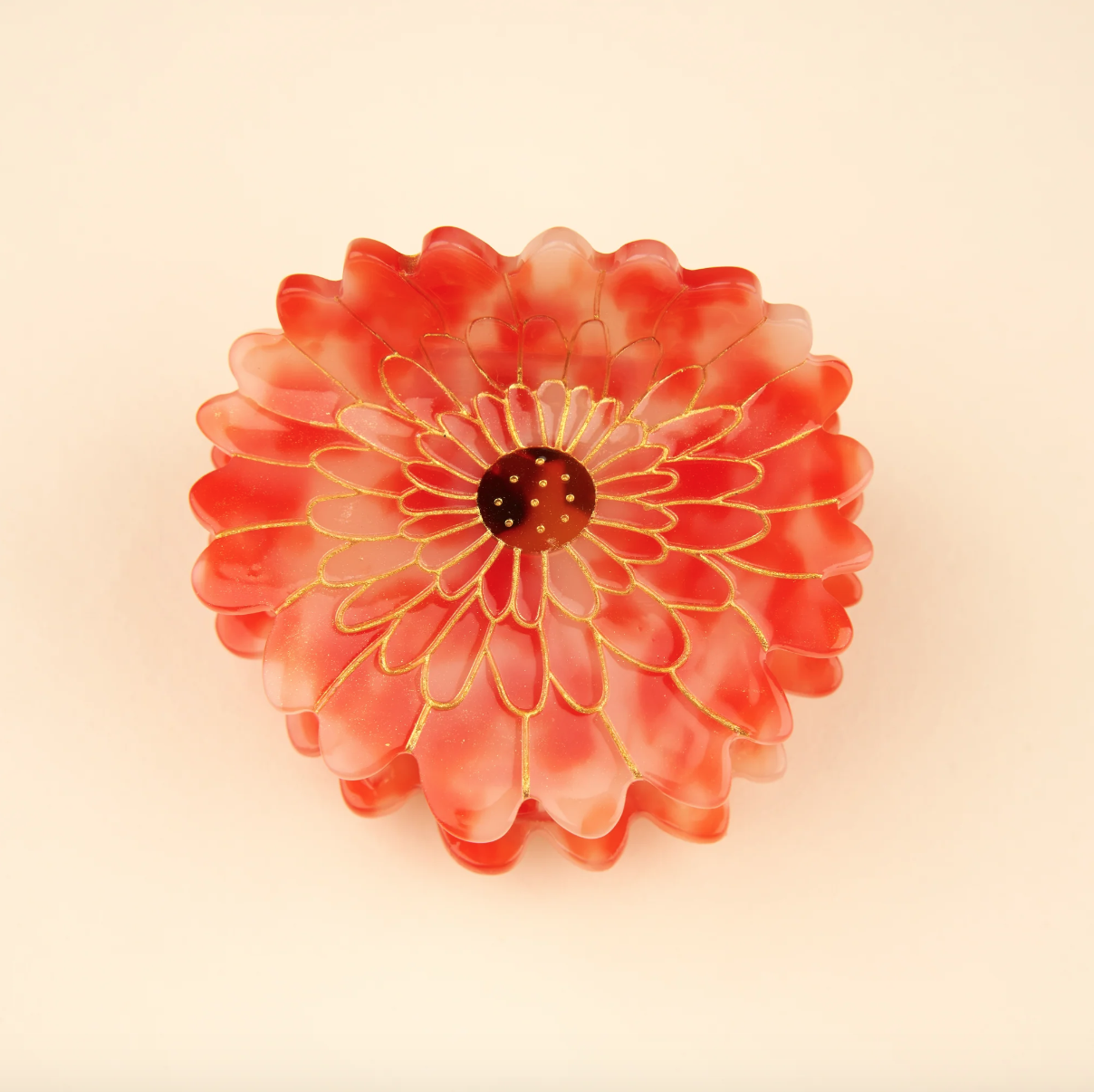 Optez pour une grande pince à cheveux colorée et poétique avec le modèle « Dahlia » de Coucou Suzette.