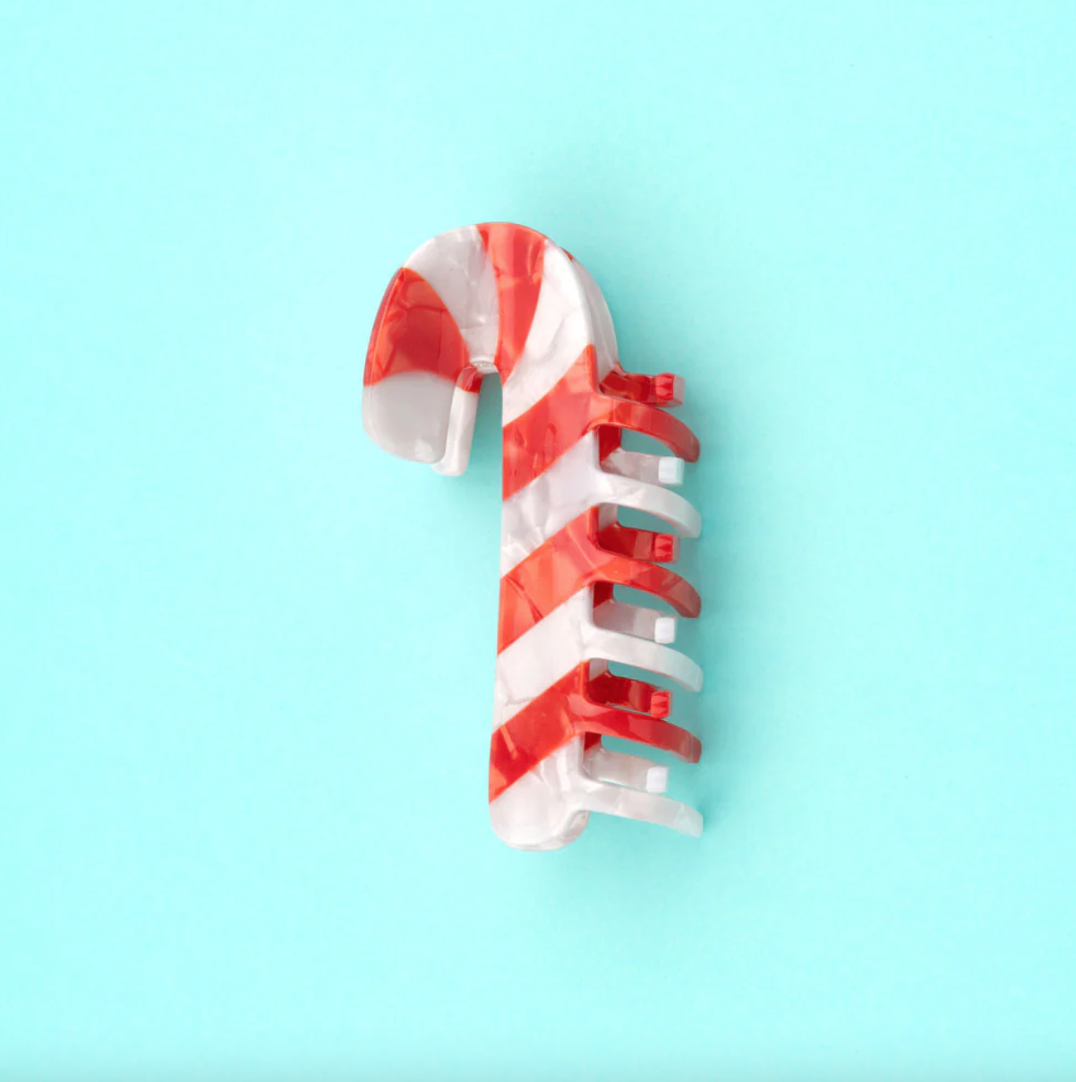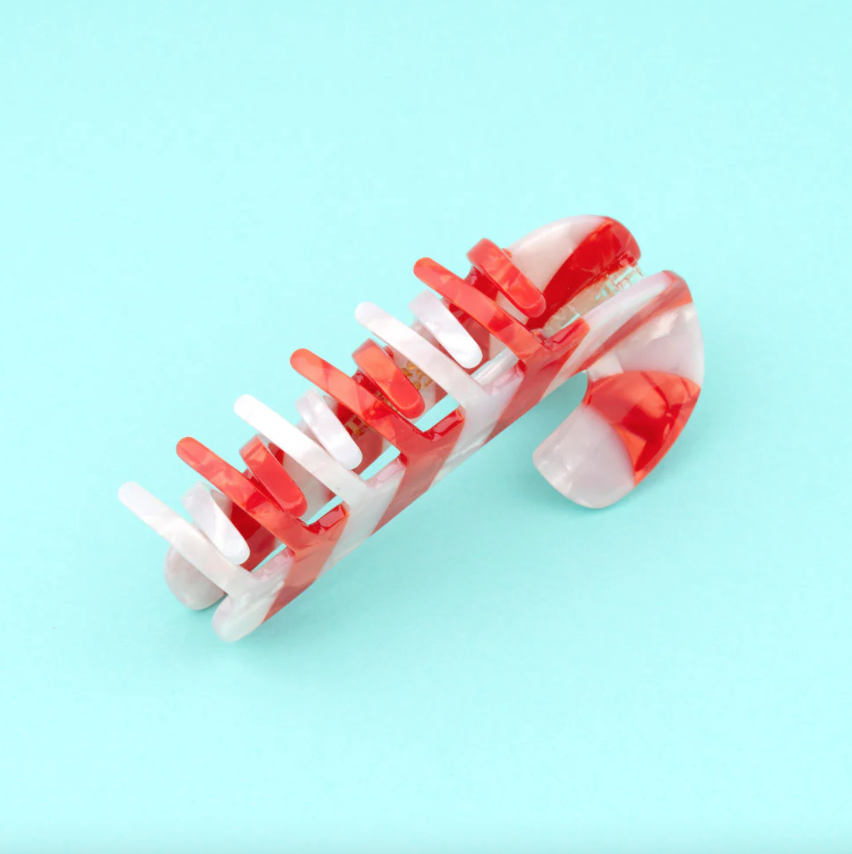 Optez pour une pince à cheveux aux couleurs de Noël avec le modèle « Sucre d’orge » de Coucou Suzette.