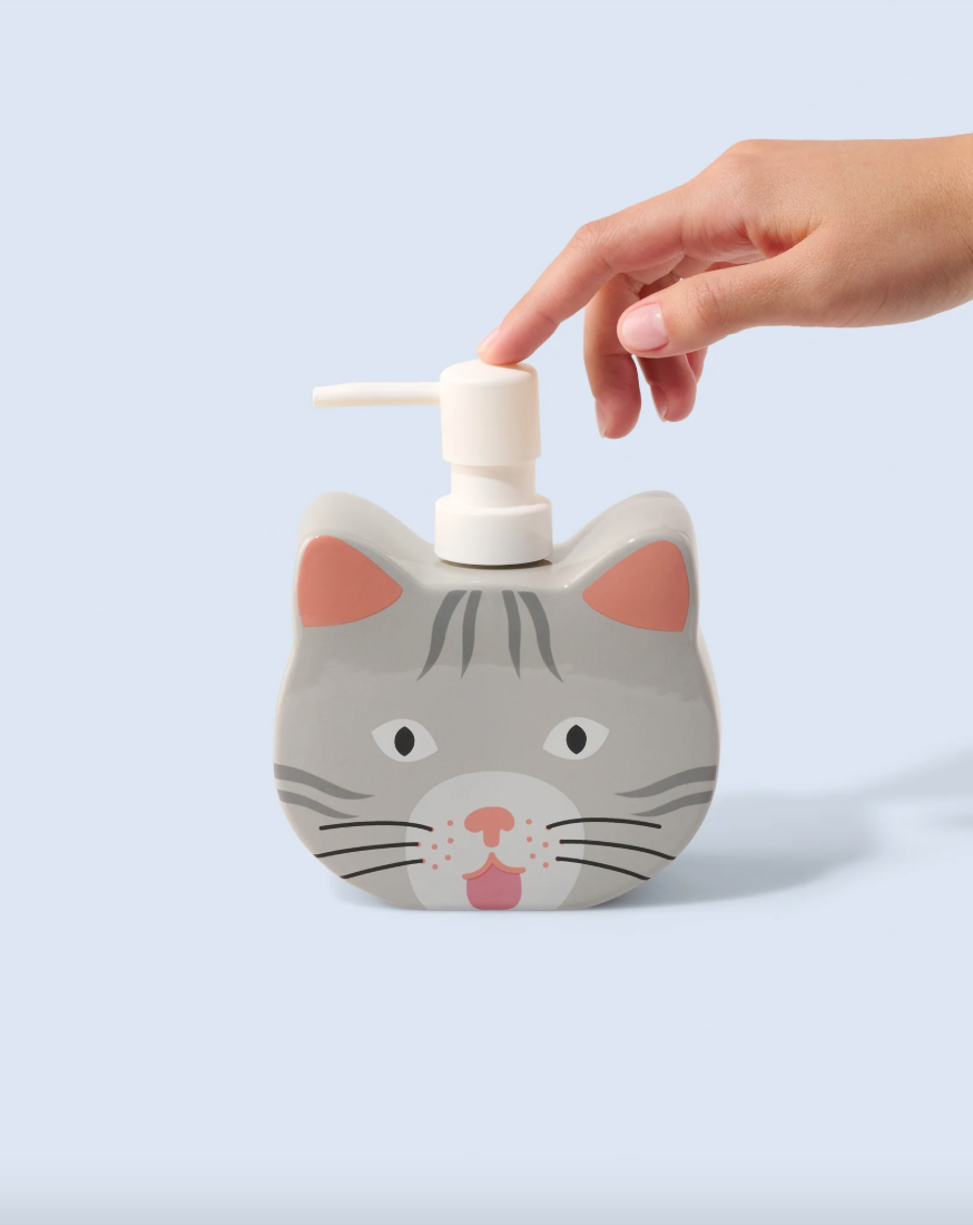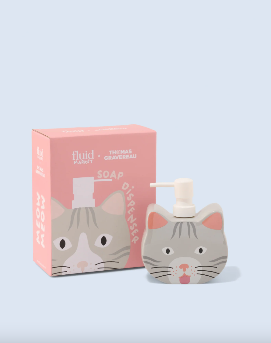 Optez pour une pièce originale et décalée en céramique avec le distributeur de savon « Chat » de Fluid Market.