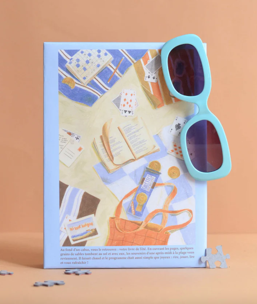 Avec le puzzle « Du sable entre les pages » version 500 pièces, vous serez transporté.e dans un univers qui sent bon les vacances et le sable chaud.