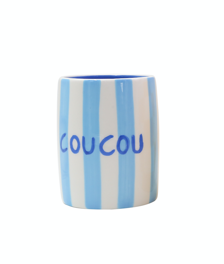 Craquez pour le gobelet en céramique rayé “Coucou” et apportez une dose de bonne humeur à vos matinées.