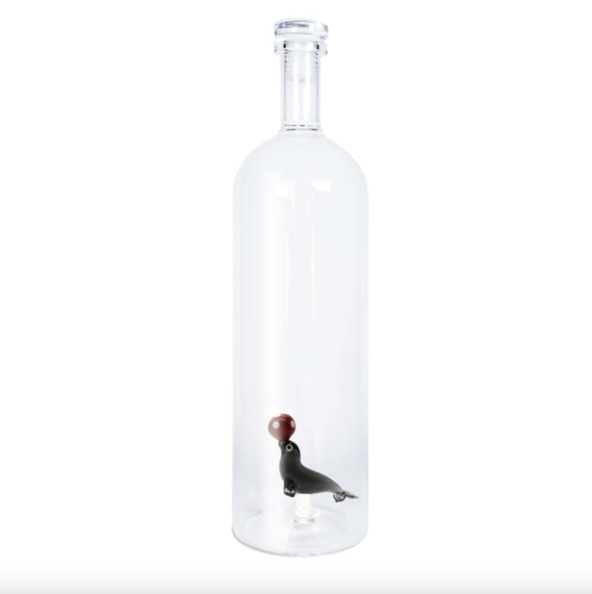 Craquez pour cette bouteille en verre au look original qui abrite une otarie en verre soufflé.